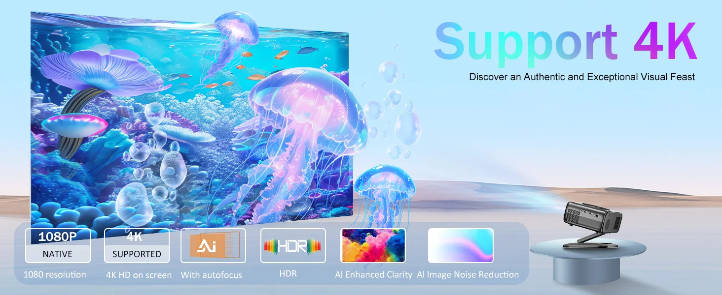 Преобразете дома си в истинско кино с този високотехнологичен 4K проектор с 26000 лумена, създаден за кристално ясна картина дори при ярка дневна светлина. Идеален за филми, спорт, игри и презентации.