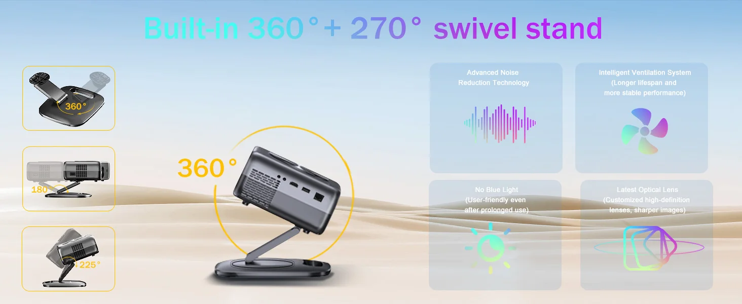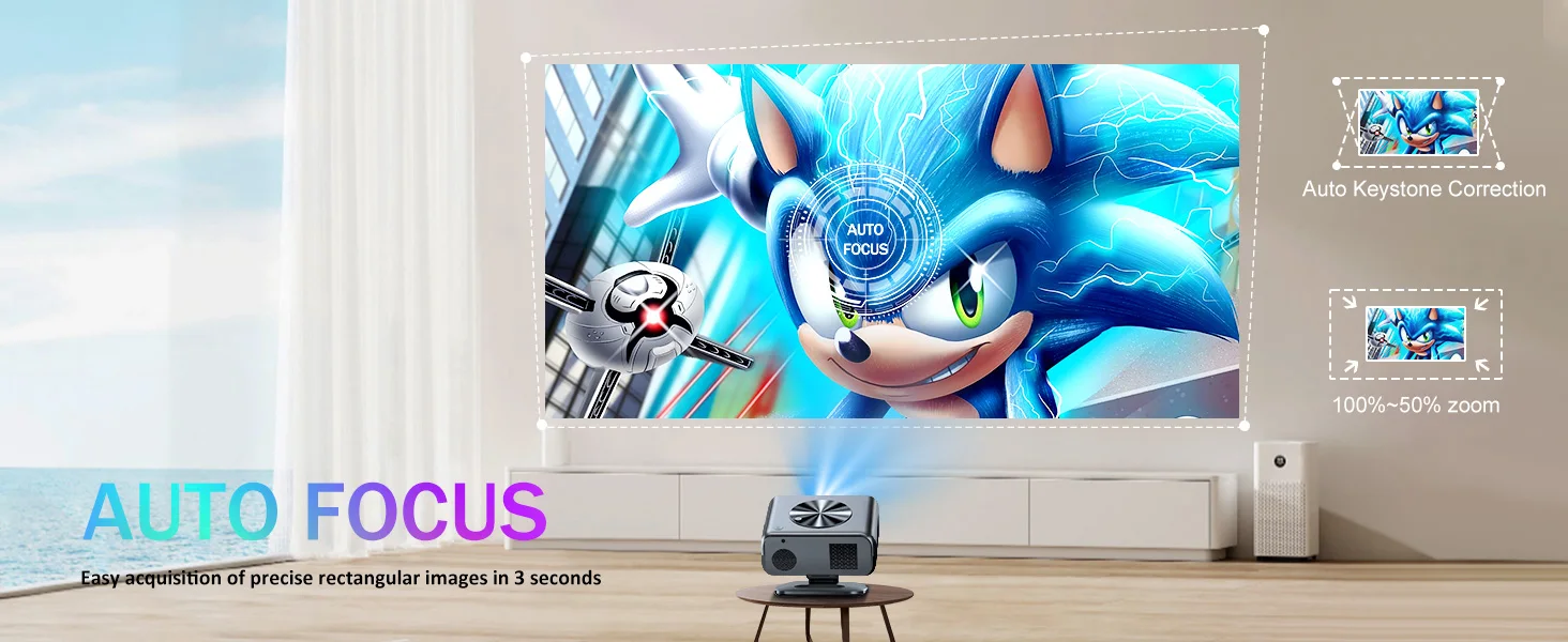 Проекторът автоматично настройва фокуса и изображението, за да получите перфектна картина без ръчни настройки – истинско кино изживяване у дома.