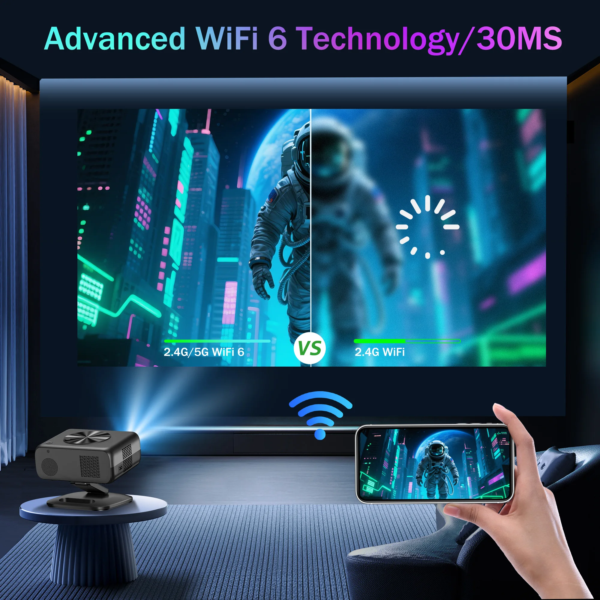 6G WiFi проектор с автофокус – Мощно домашно кино без компромиси 🎬